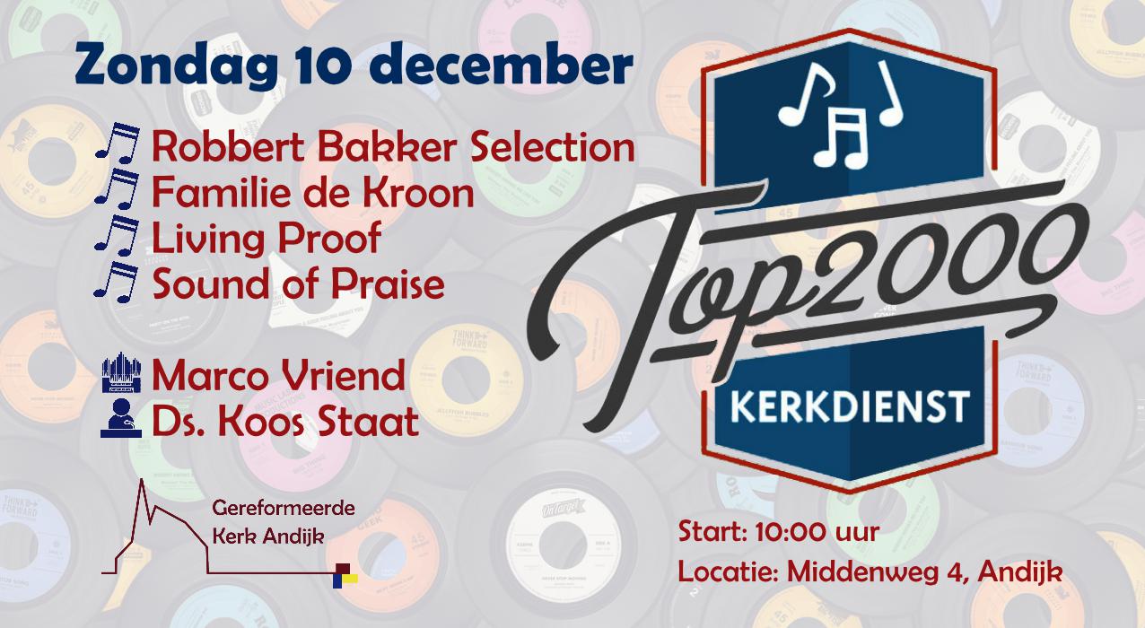 Na het succes van vorig jaar is het zondag 10 december weer zover. Voor de 2e keer zal er een Top 2000 dienst zijn in onze kerk.