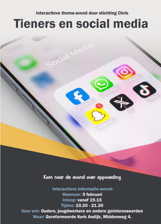 Op maandagavond 9 februari organiseren we samen met de WEG weer een thema-avond rondom jongeren in samenwerking met stichting Chris. Deze keer is het thema: ‘App-voeding’ over kinderen en internet.