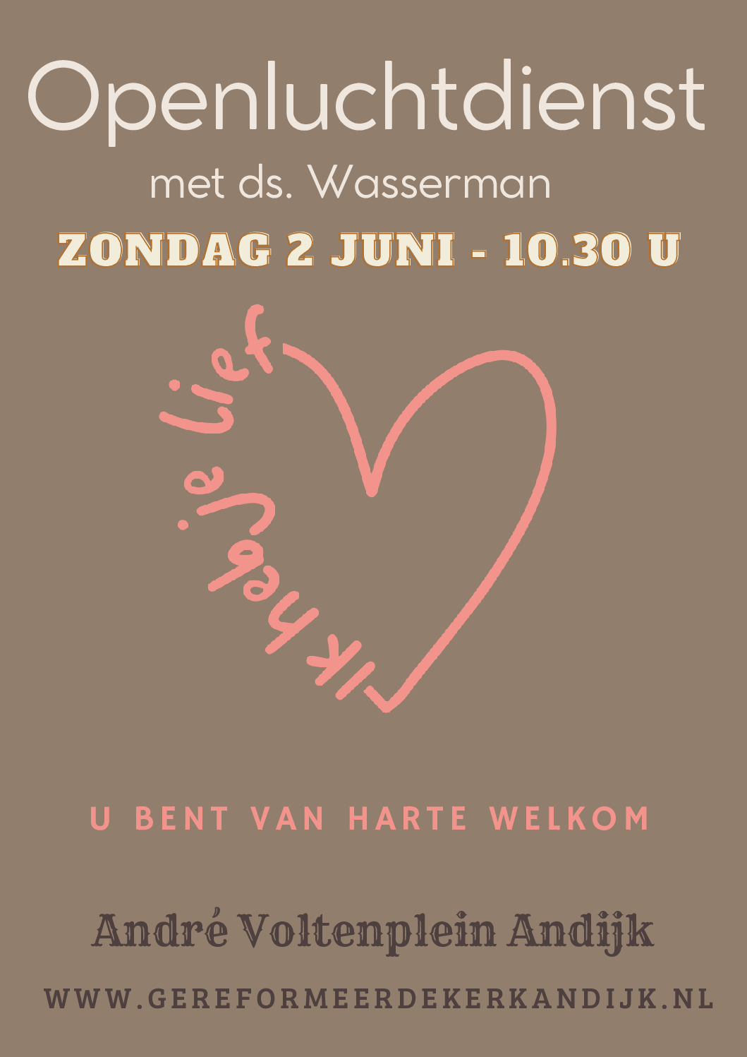 De openluchtdienst zal plaatsvinden op zondag 2 juni op het André Voltenplein in Andijk. De dienst begint om 10:30 uur.