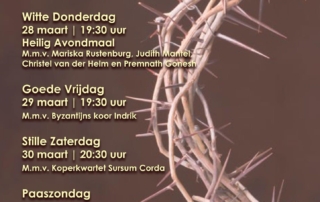 Via onderstaande link kunt u de liturgie van de diensten van Witte Donderdag, Goede Vrijdag en Stille Zaterdag inzien: Liturgie Stille week 2024